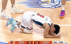然而,让人感到遗憾的是,双方比赛进行到第二节还有9分钟时,徐杰又受伤了,我们可以看到,徐杰躺在地上,显得十分痛苦,并且,还捂住自己的左脚,没错,徐杰的脚又崴了……
